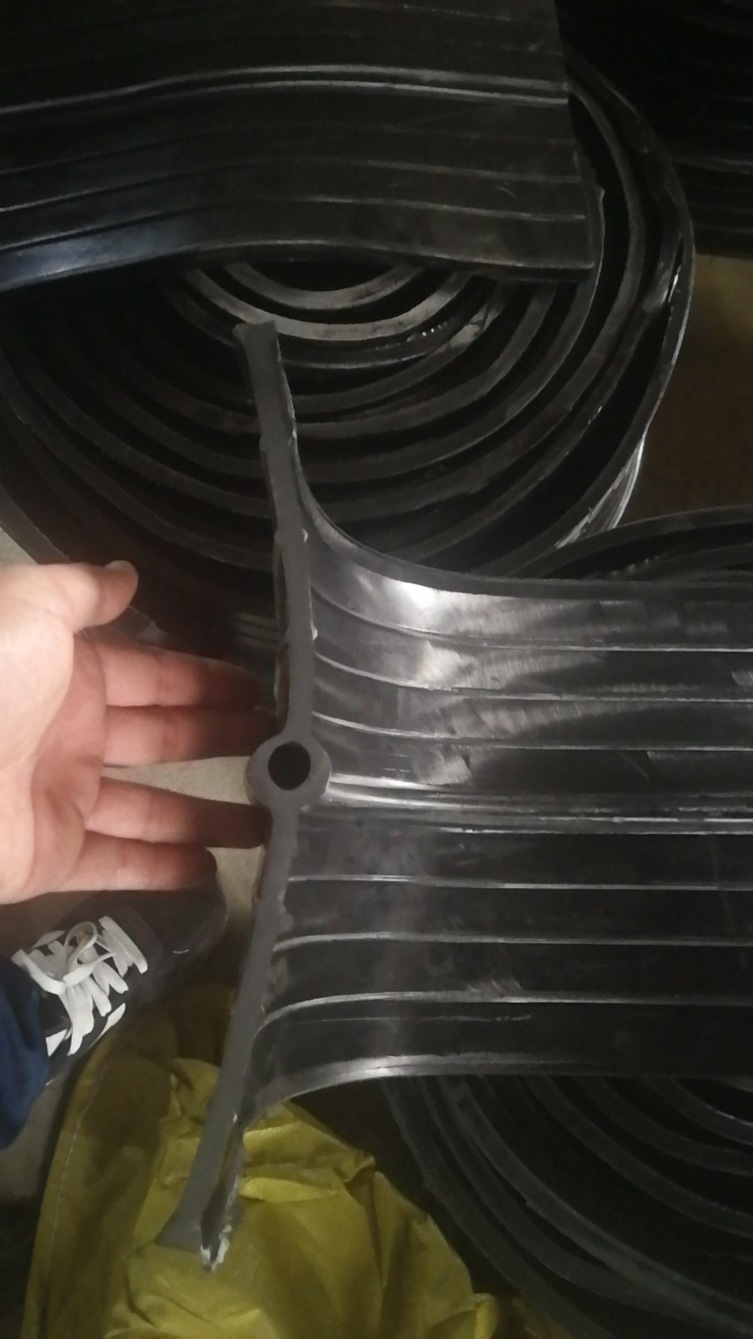 橡膠止水帶是利用橡膠的高彈性和壓縮變形性的特點,在各種載荷下產(chǎn)生彈性變形,從而起到有效緊固密封,防止建筑構(gòu)造的漏水、滲水及減震緩沖作用。在一般較大工程的建筑設(shè)計中,由于不能連續(xù)澆注,或由于地基的變形,或由于溫度的變化引起的混凝土構(gòu)件熱脹冷縮等原因,需留有施工縫、沉降縫、變形縫,在這些縫處必須安裝止水帶來防止水的滲漏問題。止水帶主要用于混凝土現(xiàn)澆時設(shè)在施工縫及變形縫內(nèi)與混凝土結(jié)構(gòu)成為一體的基礎(chǔ)工程,如地下設(shè)施、隧道涵洞、輸水渡槽、攔水壩、貯液構(gòu)筑物產(chǎn)品